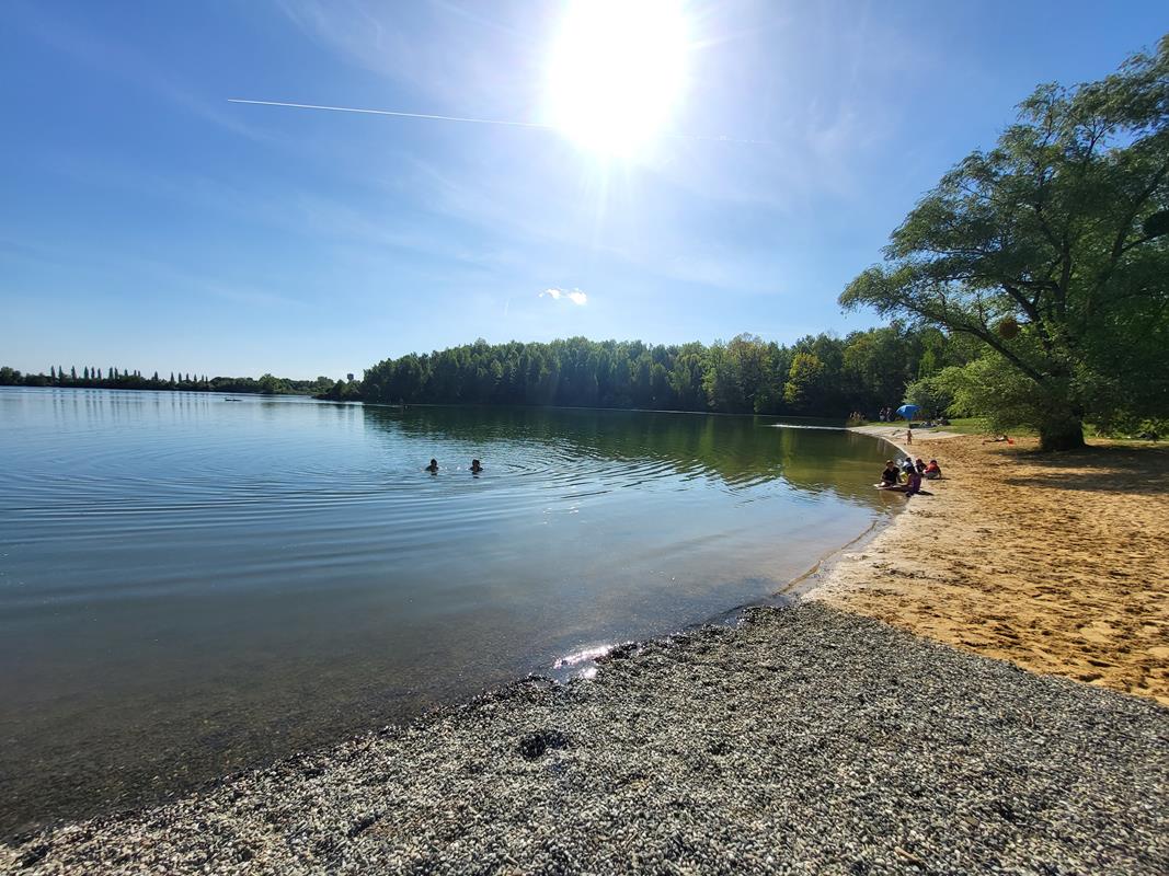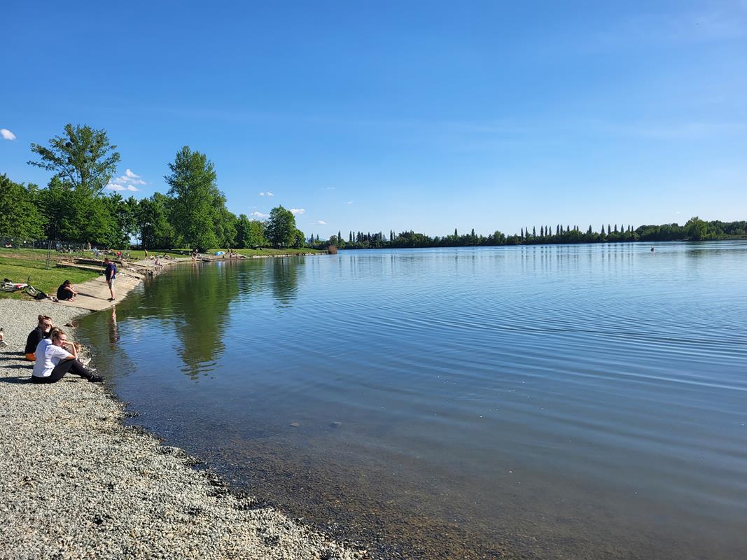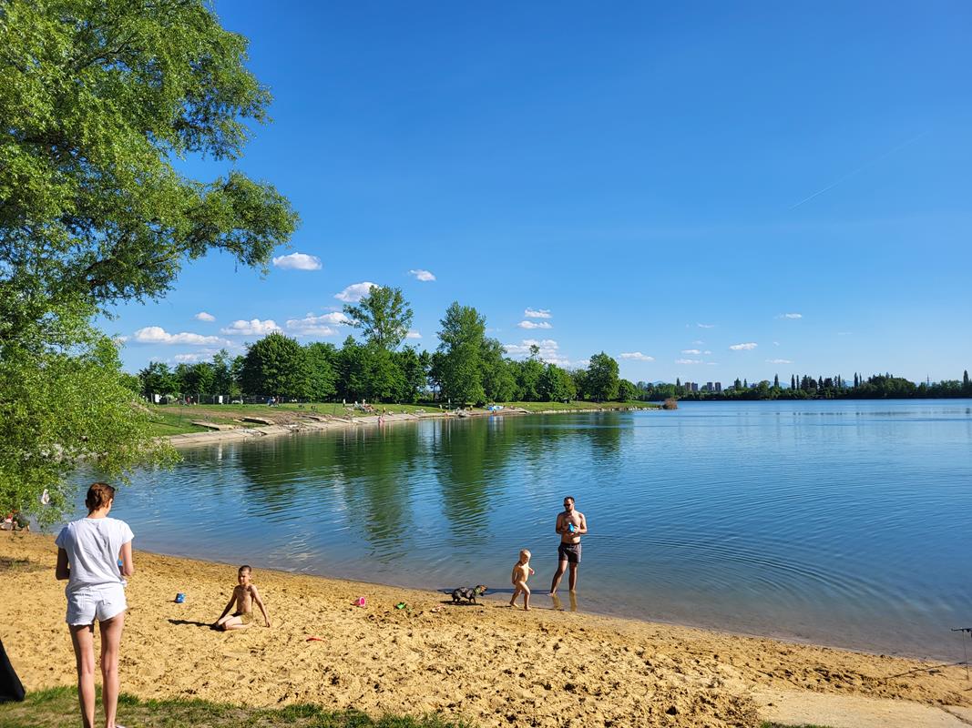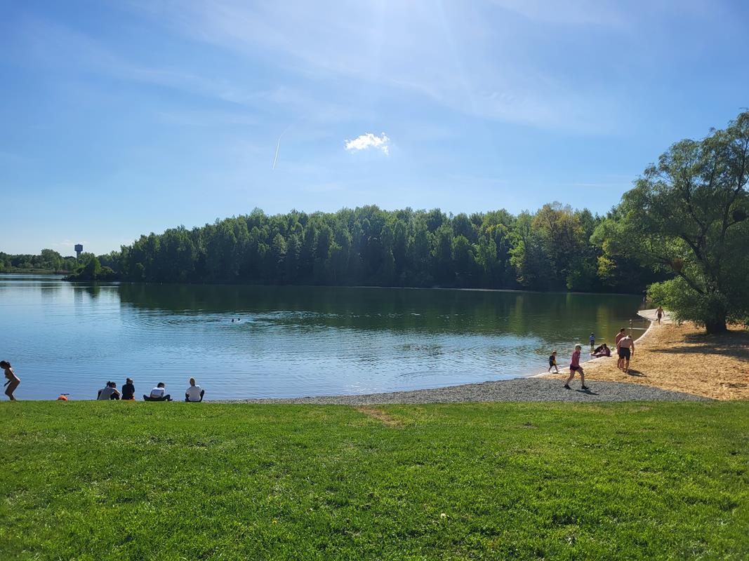 Z głównych zalet dla nas była możliwość wejścia z pieskiem, są tutaj wydzielone plaże dla psów jak i te gdzie pieski nie mogą wchodzić do wody. Ceny w restauracjach są przystępne, a nawet bym powiedział że niskie jak na taki ośrodek. Np. piwo duże lane kosztuje około 7-8 zł, lody około 5 zł. Zaletą jest też duża powierzchnia trawnika na około jeziora gdzie każdy znajdzie miejsce dla siebie od tych miejsc zacienionych po nasłonecznione. Dzieci również mają jak się wybiegać.