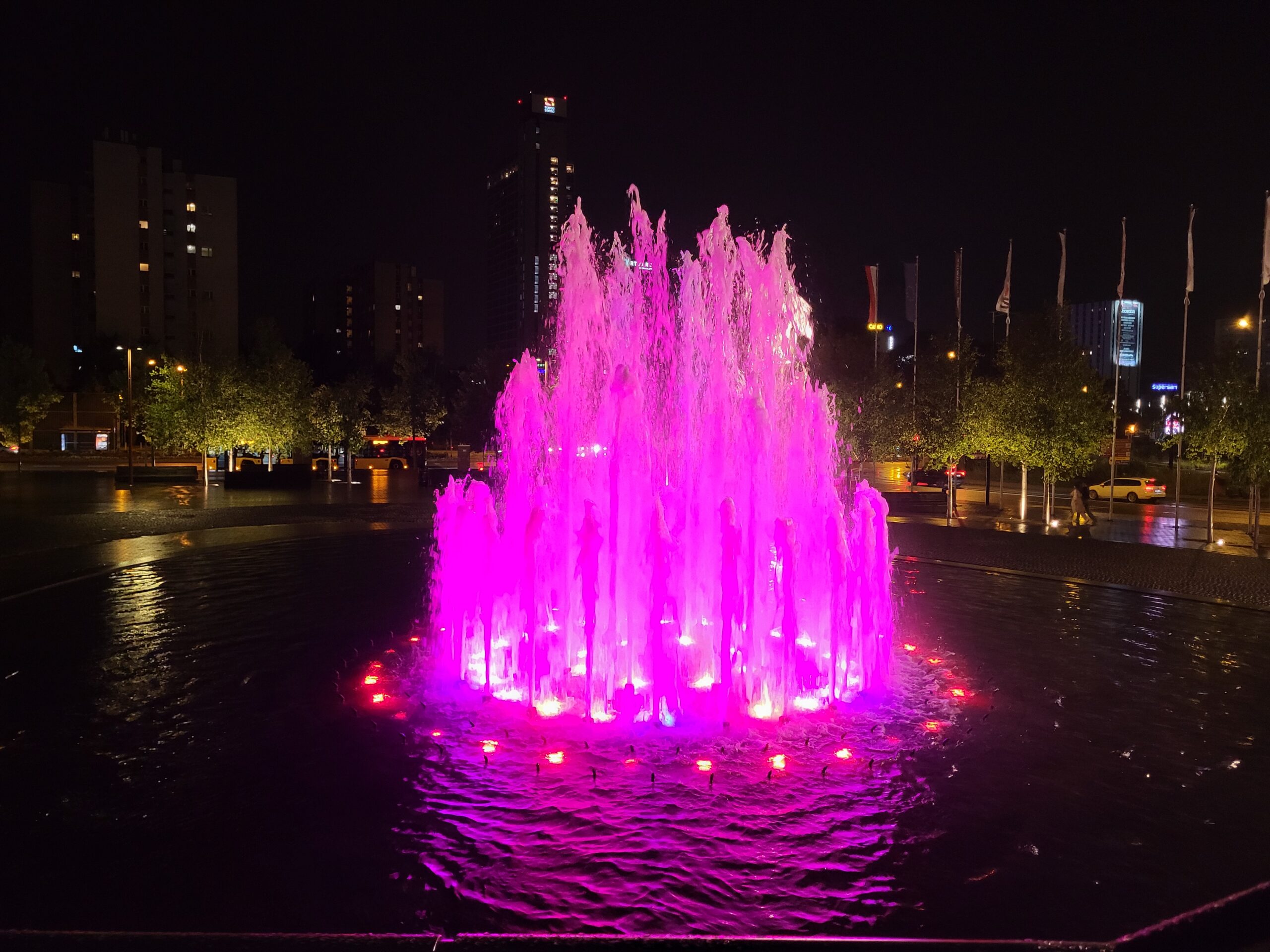 Zaraz obok spodka w Katowicach znajdziemy inne ciekawe miejsca i równie ładnie rozświetlone w nocy. Jest to między innymi Oko miasta, czyli rondo z szklaną kopułą na którym znajduje się przystanek tramwajowy, klub z dyskoteką jak i ładna fontanna. Znajdziecie tutaj również liczne oświetlone drzewka które robią wrażenie…