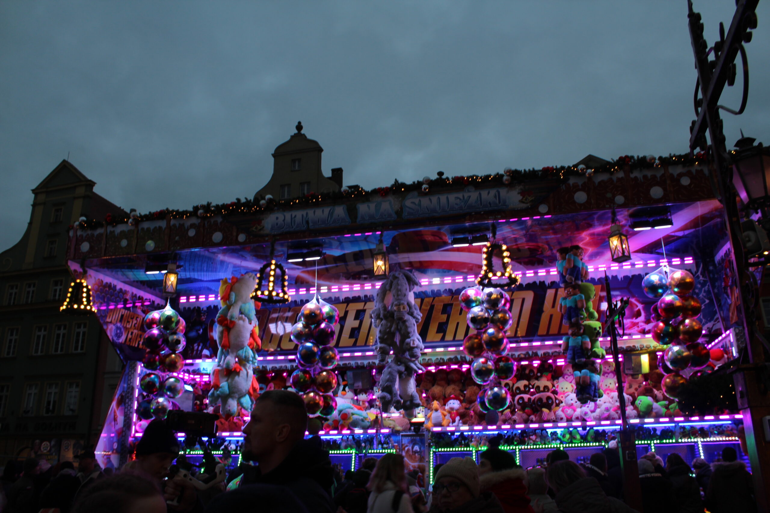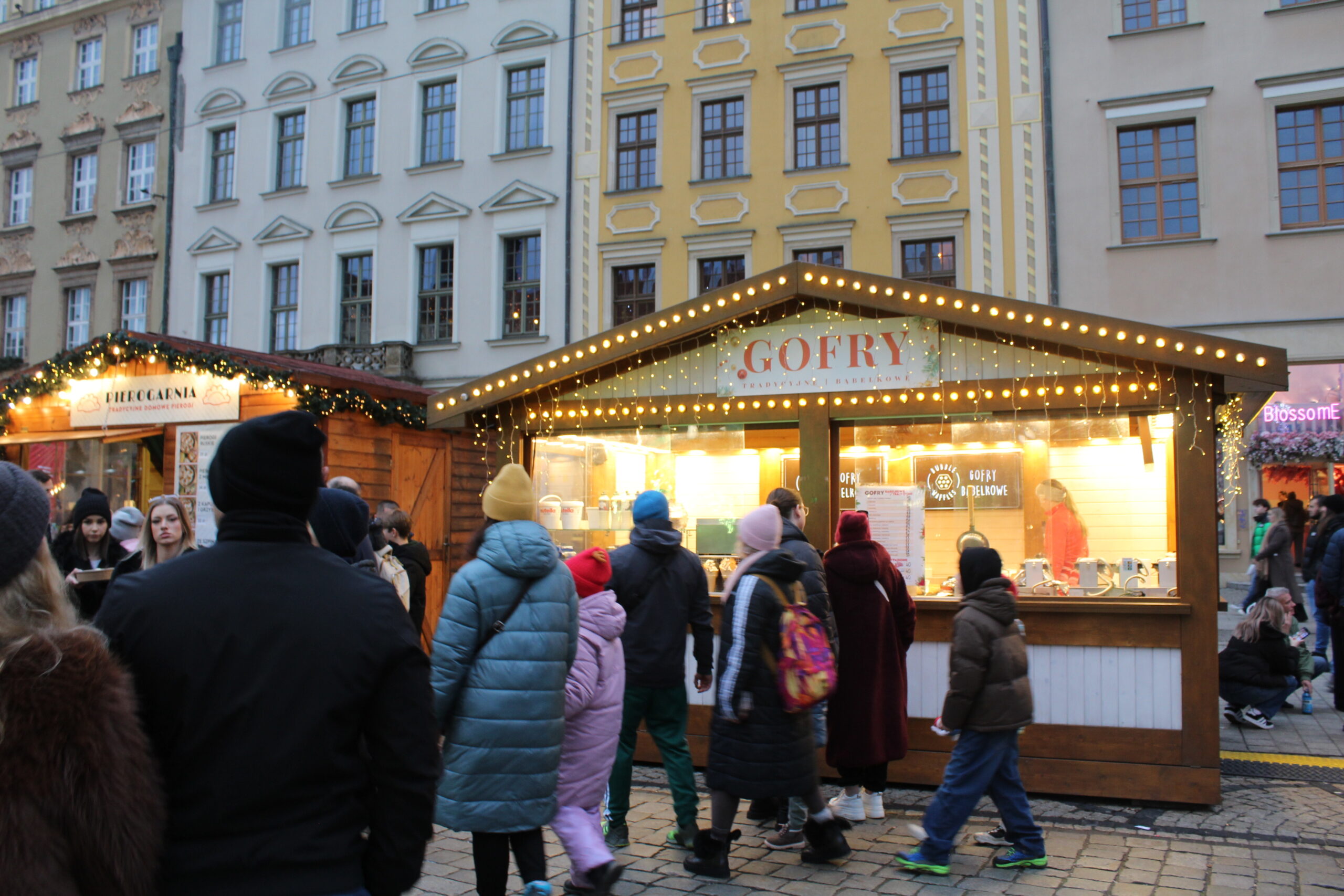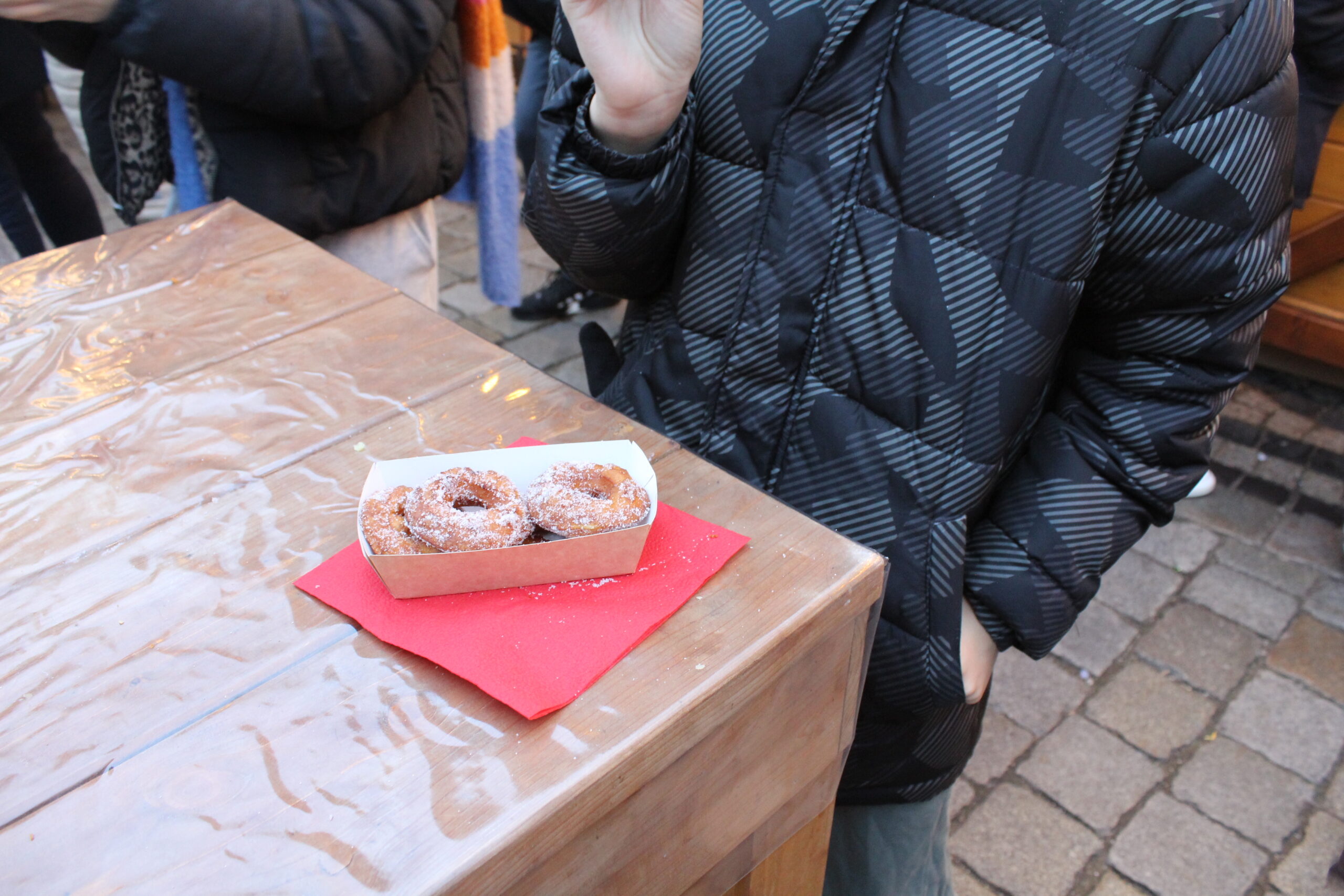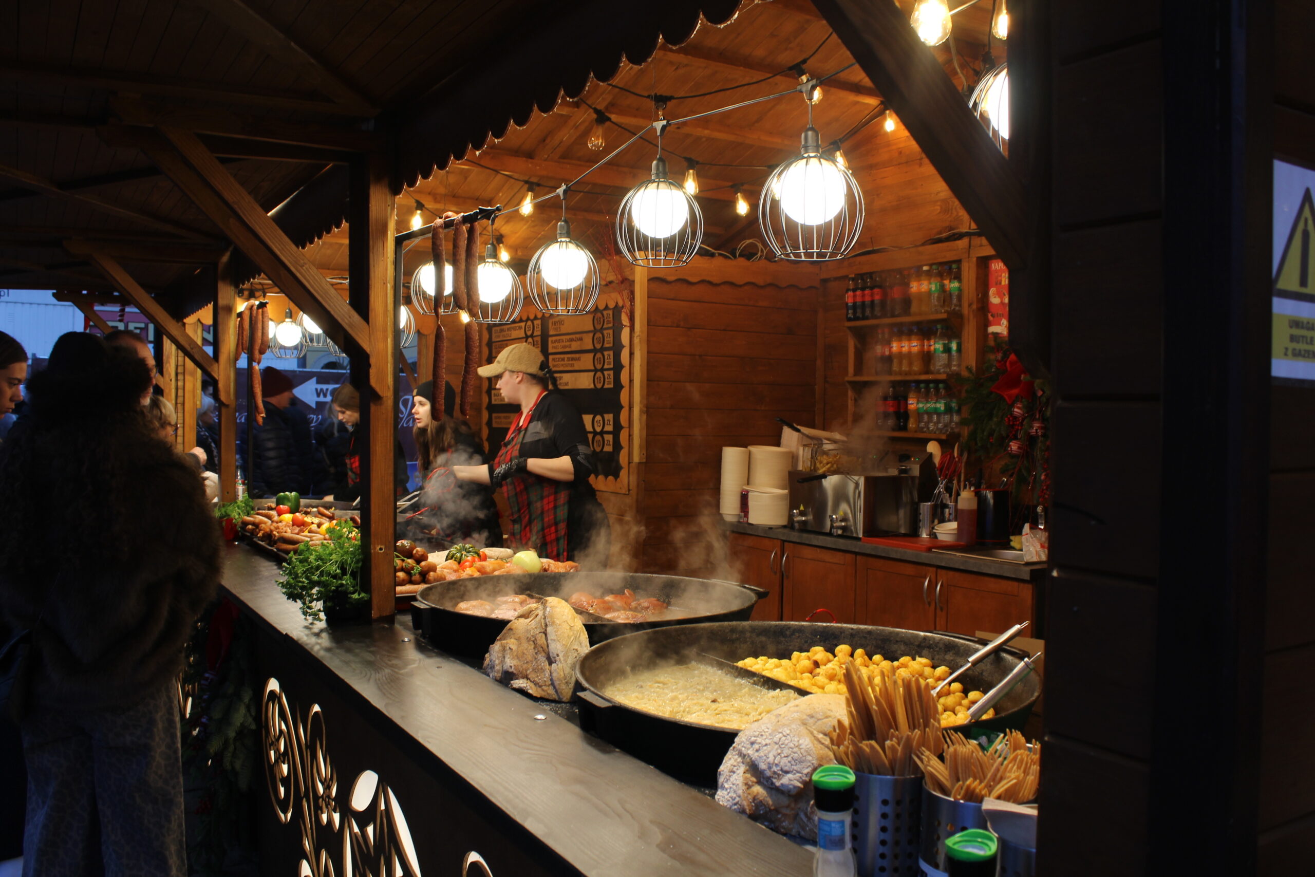 Ludzi początkowo gdy jeszcze było jasno nie było tak dużo, ale gdy się ściemniło to ciężko było się poruszać miedzy budkami, dosłownie poruszaliśmy się w korku. Ta ilość ludzi jednak nie jest problemem gdy chcemy coś zjeść. Stanowisk z jedzeniem i piciem jest tak dużo i rozsiane są po całym jarmarku że dosłownie podchodzimy od razu do kasy,