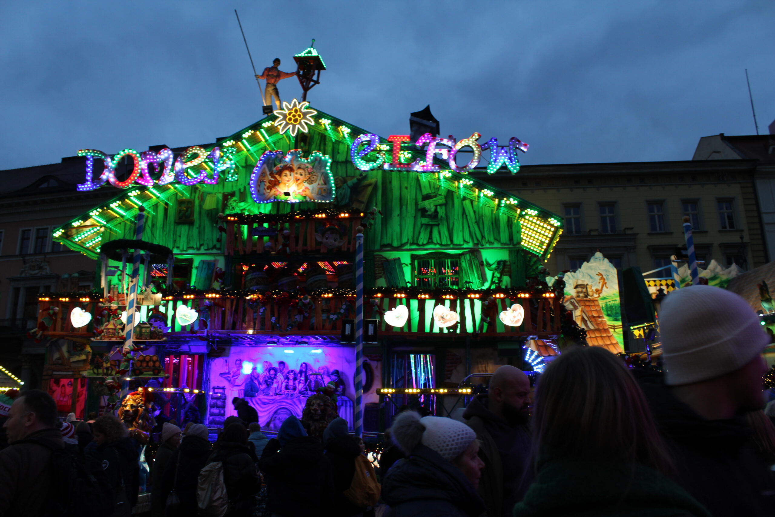 O ozdobach i budkach z magnesami, misiami, piernikami nie będę pisał bo jest ich tutaj setki. Jeżeli lubicie oglądać takie drobiazgi to będziecie mieli co robić. Punktem który zasługuje na zwrócenie uwagi jest ilość miejsc ciekawych dla dzieci i młodzieży. Jak karuzela z bombkami w których możemy polatać, domek elfa, czy inne karuzele których również tutaj nie brakuje. Ceny jak wszędzie np. domek elfa 30 zł za osobę.